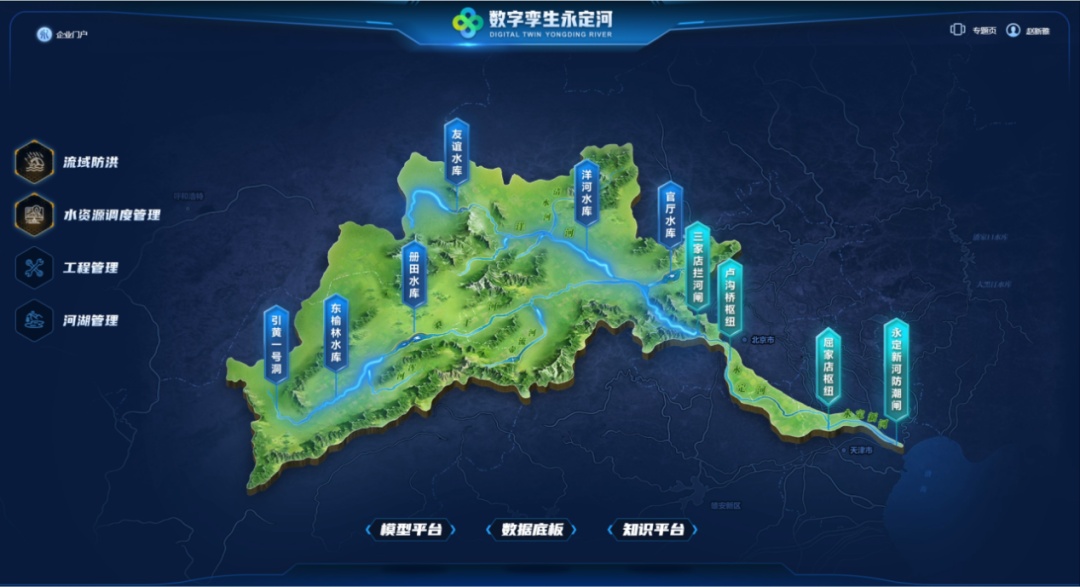 目前,数字孪生永定河已建成覆盖永定河全流域的“天空地”水量、水质、水生态监测感知网,初步构建了永定河流域数字孪生体和流域数据管理平台、模型平台、防洪与水资源知识体系,初步建成支撑永定河流域生态水量调度、官厅水库下游防洪调度“四预”,兼顾工程管理、河湖管理、节水管理等N项业务的应用平台。