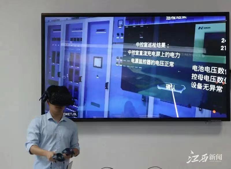 数字孪生峡江水利枢纽工程打造了VR仿真教育培训系统,能够更全面地掌控业务管理流程。过去,工程需要专门请人定期开展巡查巡检、工程检修等工作,现在工作人员只需在培训室佩戴VR眼镜,手持操控器,即可“身临其境”完成堤防巡检、设备检修等业务工作,还可利用无人机进行定期巡检。