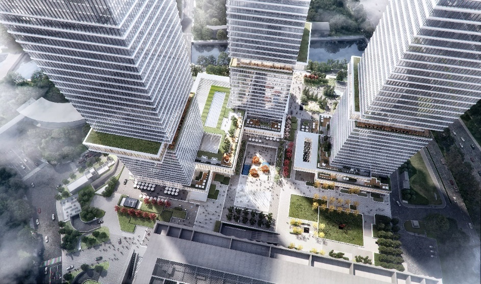 在设计之初,保利浦开金融中心便以片区统筹开发的全局观,将写字楼、商场与上海博物馆东馆在同一地块一体化设计,用一个场景浓度极高的7000平方米中央广场,将三栋180米高的超甲写字楼、4.7万平方米的精品文化商业与上海博物馆东馆上下贯通,形成一个人文商务城市综合体。