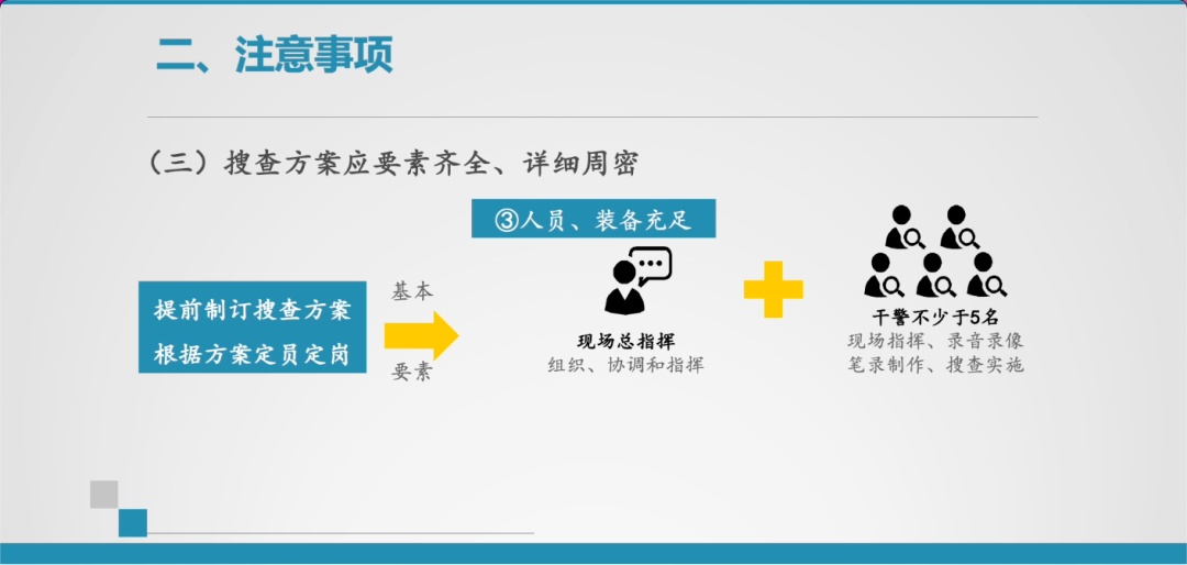 (三)搜查方案应要素齐全、详细周密