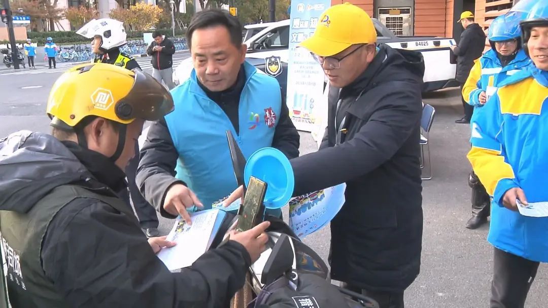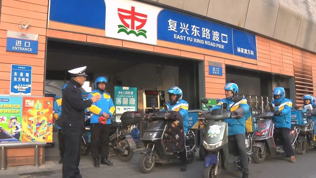 12月1日下午,黄浦交警会同轮渡站工作人员以及闪送骑手志愿者,在复兴东路轮渡口浦西段设点,向过路的电动自行车骑行者发放过江地图,并讲解相关安全知识。“我们这边停航以后怎么走,有个引导的。以后假如碰到迷雾天就可以引导你。”