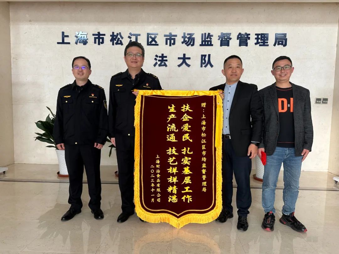 “真的太感谢了,这次免罚让我们意识到错误的同时,也避免了企业信用出现污点。”11月22日,上海财治食品有限公司相关负责人专程将一面印有“扶企爱民,扎实基层工作;生产流通,技艺样样精湛”字样的锦旗送到区市场监管局执法大队,以此表达对大队指导并帮助解决企业困难的感谢。