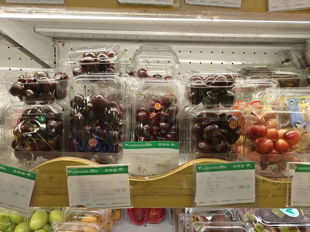 与其他水果不同,车厘子鲜少散卖,大到各家超市,小到街头巷尾的水果店,车厘子被用一个个小盒子装起来,250g的价格多在50元上下。“现在刚上市,价格比较贵,大家基本上就是来了解一下价格,买的人不多。”按照过往经验,田林路一家水果店店主认为,等海运车厘子大批量到货后,车厘子价格降低,到时候采购的人会变多。