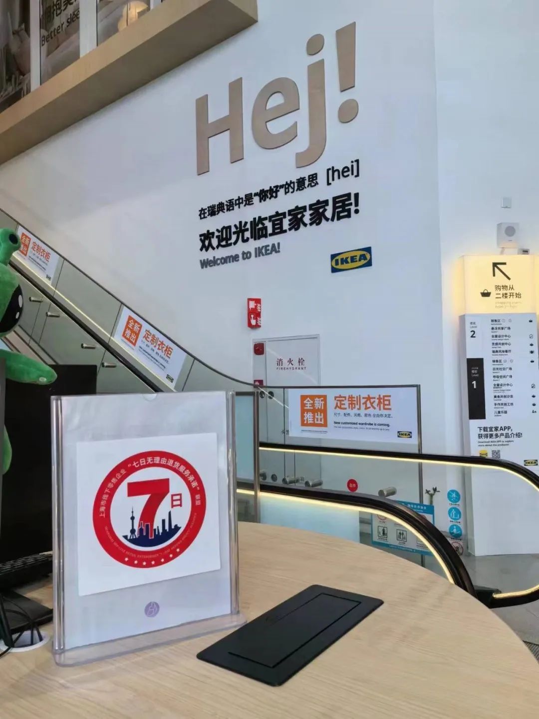 宜家家居的“七日无理由退货”服务承诺是保障消费者权益的重要举措之一,该企业表示将在行业主管部门的倡议下,持续做好服务承诺,继续秉承以消费者为中心的服务理念,不断提升服务质量,为消费者提供更加优质、便捷的购物体验,为上海建设国际消费中心城市近悦远来的消费环境贡献力量。