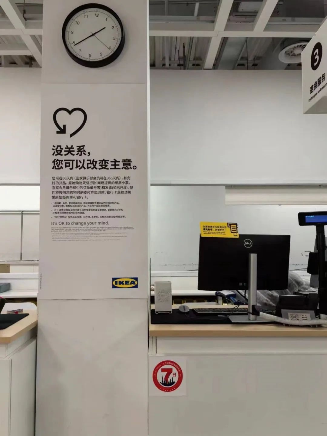 为了更方便顾客退货,宜家还承诺可以跨店退货。顾客如有需要,可携所购商品至就近商场办理退货,也可通过宜家APP、致电客服中心等线上渠道联系处理退货事宜。所有退换货政策在商场店内、宜家官网、宜家APP、客服中心语音提示等渠道均有公示。这一举措,不仅提高了退货效率,也为消费者提供了更加便捷的服务。