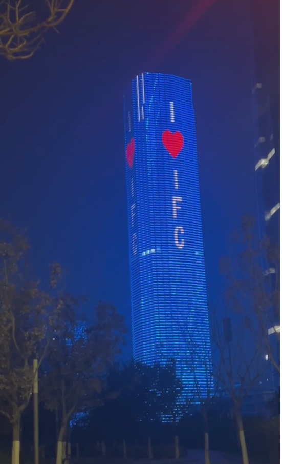 泛光照明在幕墙楼层封闭后,第一时间投入施工。作业人员分成两组,白天进行线缆敷设及灯具、设备安装工作,晚上进行灯具点亮调试工作。晚上调试过程中,东南西北四个面各安排一组人在近距离及远距离进行实时观察,有问题第一时间反馈,施工问题由现场施工人员进行处理,调试问题由调试人员调试相应灯具点位。增设泛光照明设备间施工所专用照明设备及现场施工电梯专项配合,确保施工人员可快速穿梭各楼层。用“光”提升建筑品位,用“光”赋予建筑灵魂,泛光照明点亮68层,赋予济南CBD片区新的活力。