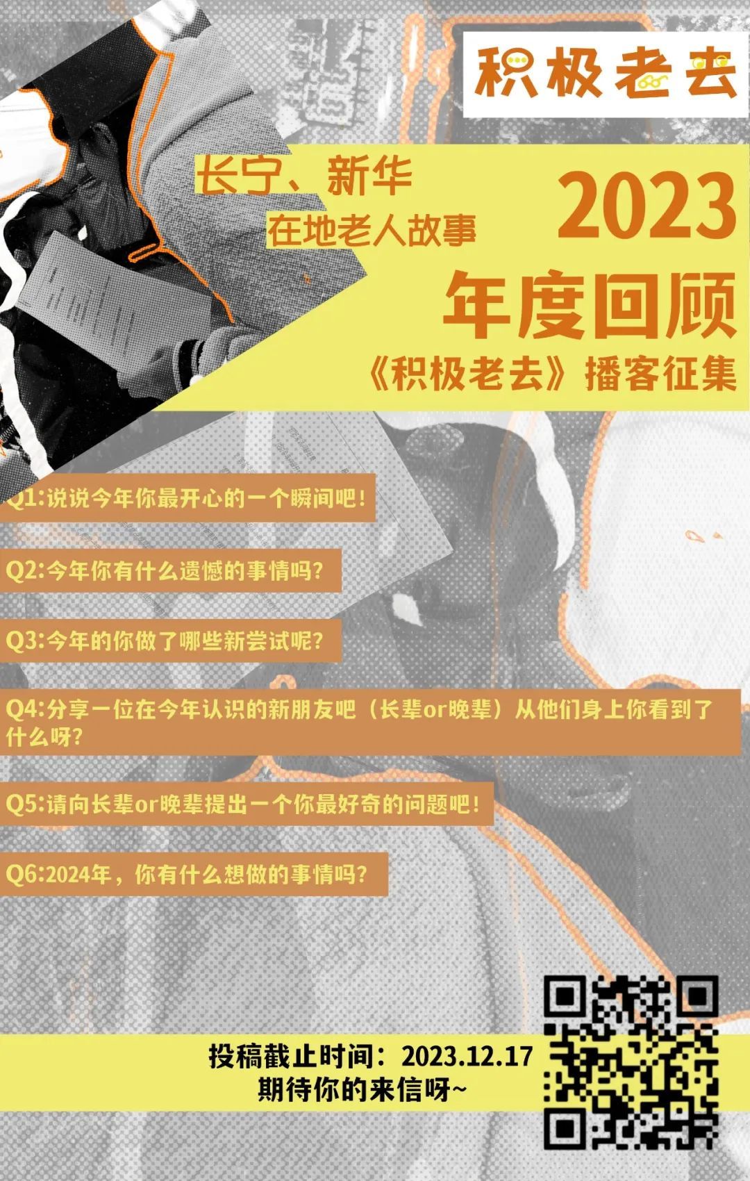 在第一期的节目中,希望一起回顾即将过去的2023年,开启2024年。非常期待在社区的长辈们、伙伴们向“积极老去”计划投稿哦~