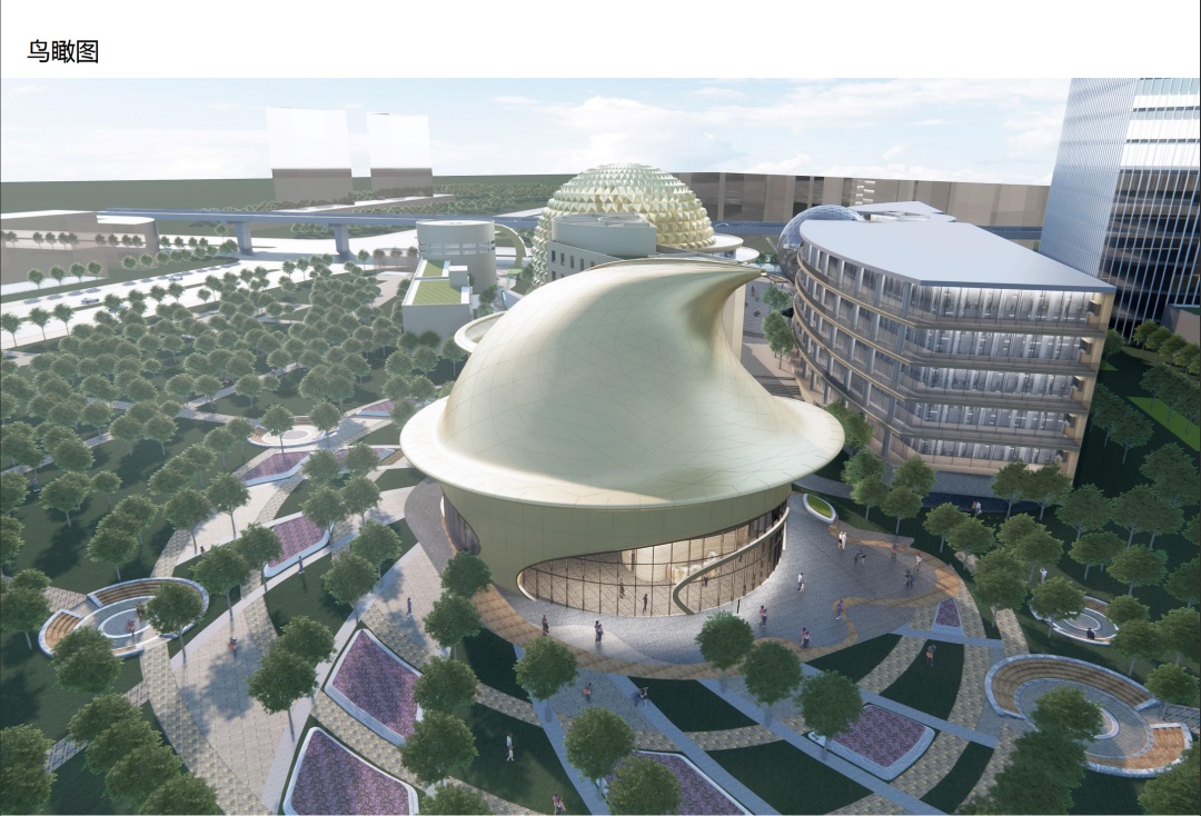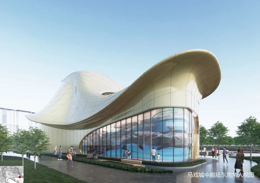 建筑的设计灵感来源于旋转、攀登、向上的马戏精神,以螺旋上升的椭圆形体将周边建筑与公园景观整体统一起来,同时以金色穹顶造型与杂技场遥相呼应。计划工期730天,建设完成后,将成为上海又一新的文化地标。