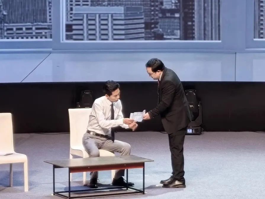 “咱不管啥时候,做人都得像这‘老来青’,身子得长正,管它什么风,才能吹不倒。”情景剧的第一篇章《老来青》讲述了松江水稻专家陈永康抵制名利诱惑,潜心下地研究,在三分试验田里用日复一日的艰苦劳动换回“老来青”大丰收的动人故事。 整部作品包含《老来青》《剪中爱》《培育》《坚定》四个篇章,通过“戏中戏”的表现手法,以工人文化宫为迎接第一批参观团队准备讲解内容为主线,引出新中国成立以来奋战在松江农业领域的陈永康、服务行业的张锡章、职业教育领域的张巨浪和制造业企业家张建军四位劳模的事迹,让观众透过时间的长河,感受劳动人民在平凡岗位上的不平凡。 首演现场,松江各行各业职工代表、中小学学生代表观看了演出。值得一提的是,剧目篇章《剪中爱》中的人物原型——张锡章也来到了现场,学生们纷纷围在他身边签名合影。 据介绍,本次演出由松江区总工会主办,来自8个行业的17名在职职工参与了演出。区总工会相关负责人表示,希望通过创新的舞台原创表演,打造职工“原创+”的文体品牌,讲好劳模先进故事,大力弘扬劳模精神、劳动精神、工匠精神,加强对职工的思想政治引领。