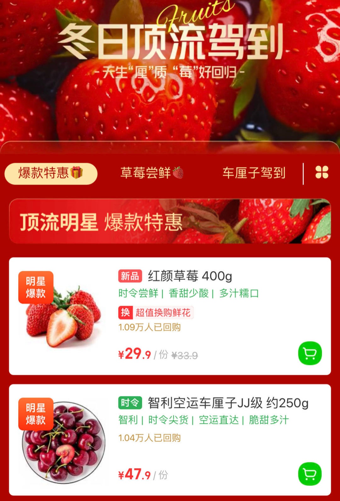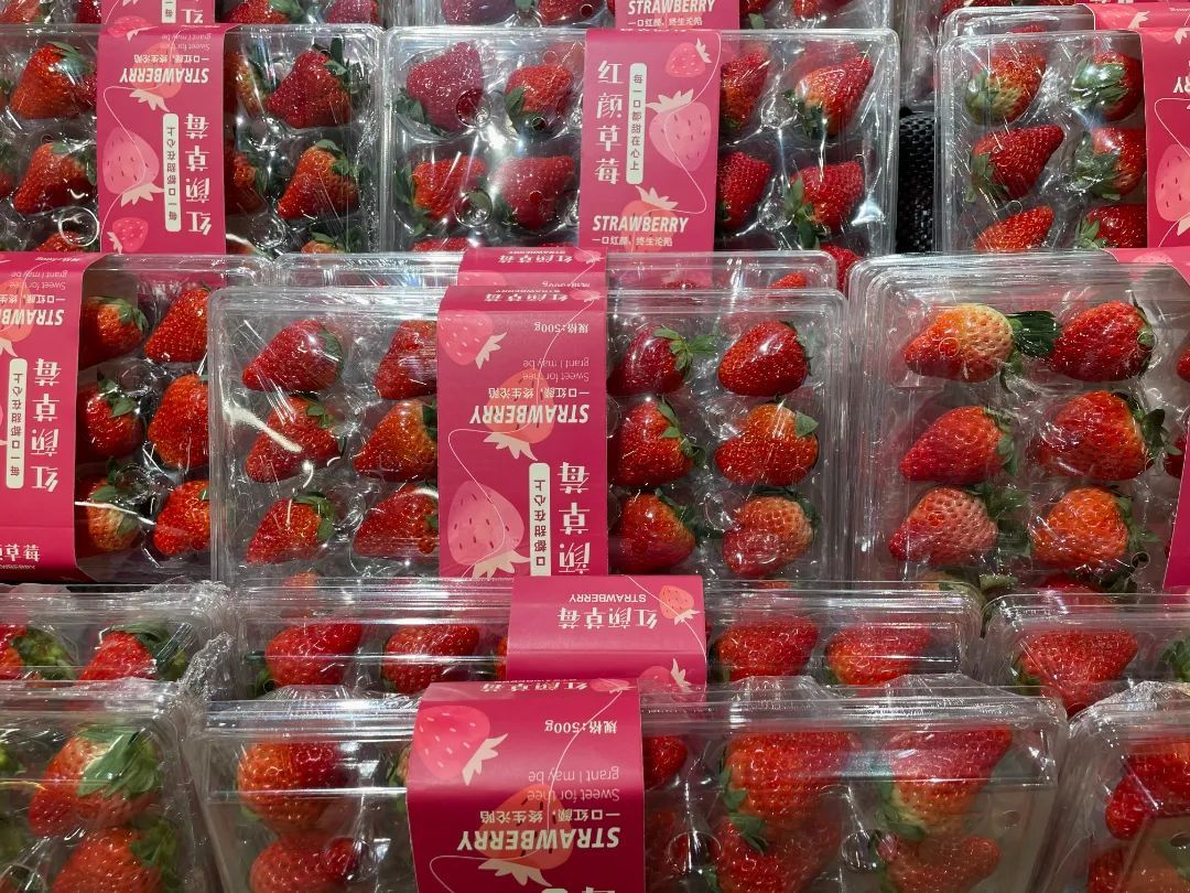 被誉为“冬日水果皇后”的草莓更是被摆放在了商超入口处。记者看到,目前超市出售的草莓有章姬草莓和红颜草莓两个品类。在价格方面,300g盒装章姬草莓售价29.9元,500g盒装红颜草莓售价39.9元,一盒共有20枚。