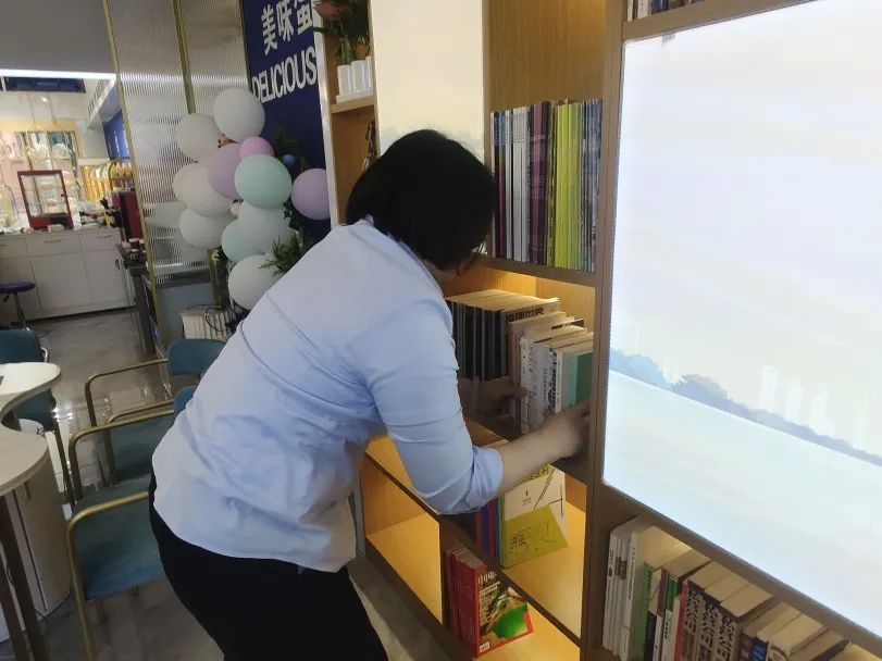位于广中路街道的恩焙优品,是一家集咖啡饮品、蛋糕面包、烘焙体验于一体的潮流面包店。面包店所处的位置与北虹初级中学、广中学校、上海市体育运动学校相邻,吸引了不少学生群体,同时周边还有小区居民群体及办公楼白领群体,这些不同的群体对于阅读有着不同的需求。