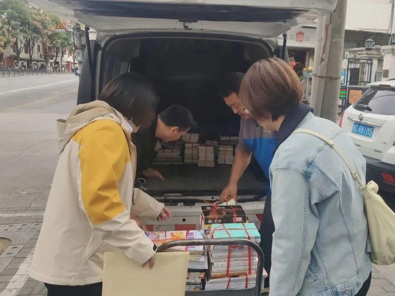 虹口图书馆的馆员们与恩焙优品的店员们一同,按照读者们的取阅需求,把“文化快车”带来的图书都精心摆放好,服务点一开张就吸引了许多读者。