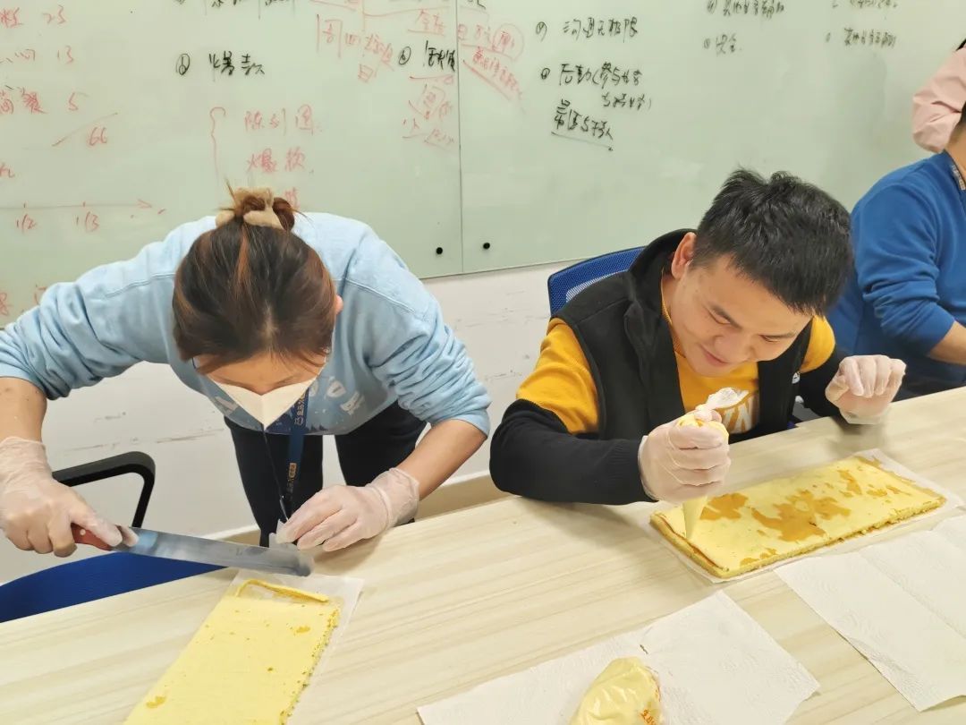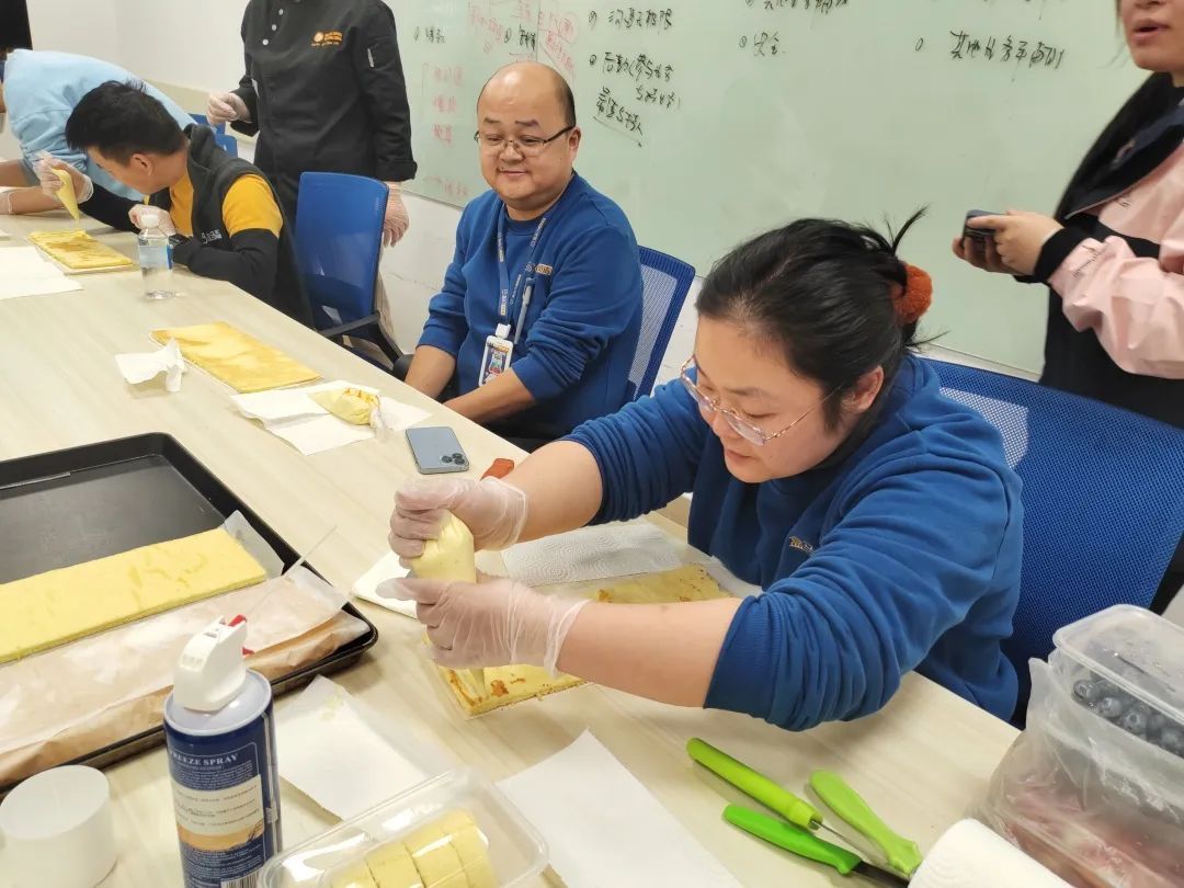 蛋糕卷制作的“神秘面纱”被揭开后,大家手持工具纷纷跃跃欲试,发挥自己的想象力和动手能力,制作了属于自己的独具一格的蛋糕卷。活动现场欢声笑语,氛围轻松愉快,一个个蛋糕卷芳香四溢,充满幸福味道。一位盒马的员工表示,她很喜欢这个活动,在老师手把手的指导下,第一次动手制作蛋糕,感觉自己有这方面的天分,以后可以考虑进一步学习新技能。