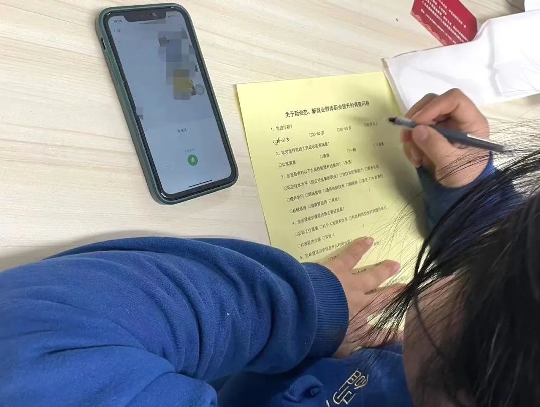 这份问卷旨在收集大家对于技能培训、职业规划等方面的看法和需求,以便为曹杨职校和盒马在未来的合作中提供更加精准的方向,从而提供更好的技能培训和发展机会。大家纷纷认真填写调查问卷,分享自己的看法和建议。后续,街道将分析问卷结果,结合大家需求,更好地服务新业态新就业群体。
