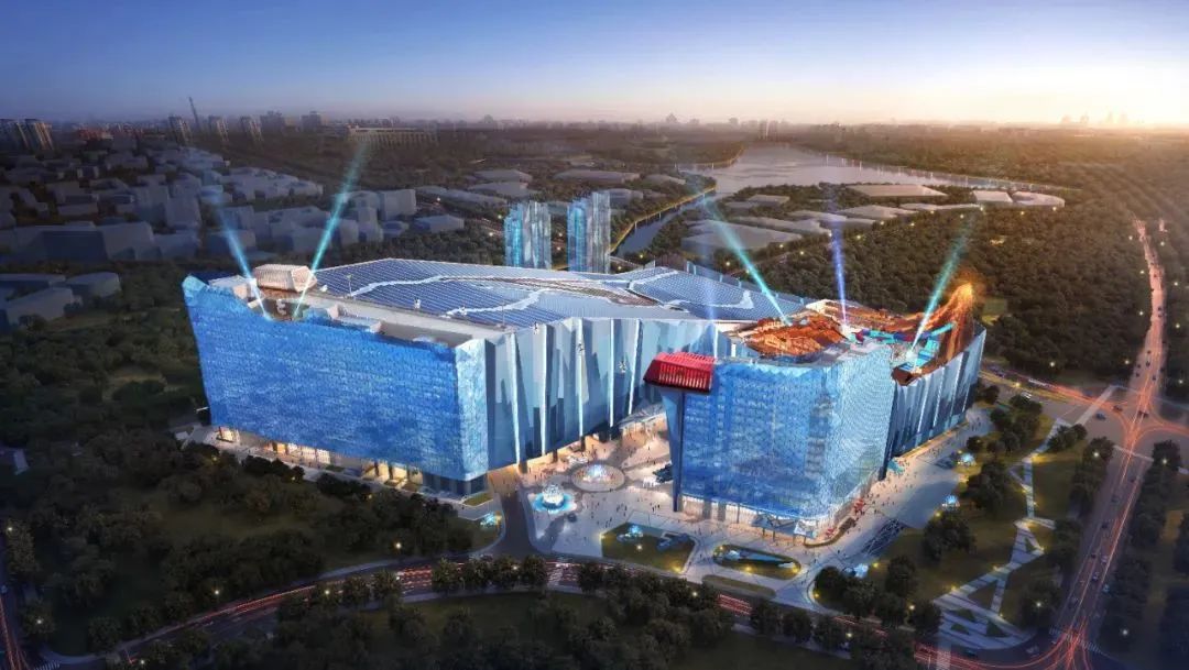 场馆俯瞰图 耀雪冰雪世界总建筑面积达35万平方米,主要包含一座建筑面积约9万平方米的室内真雪滑雪场、一座全天候水上乐园、三座星级度假酒店、多功能会展中心、冰雪主题商业小镇,建成后将成为一站式冰雪度假胜地,填补上海旅游产业链上冰雪旅游的空白。