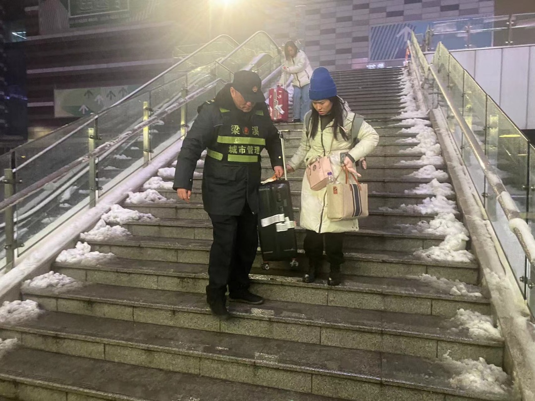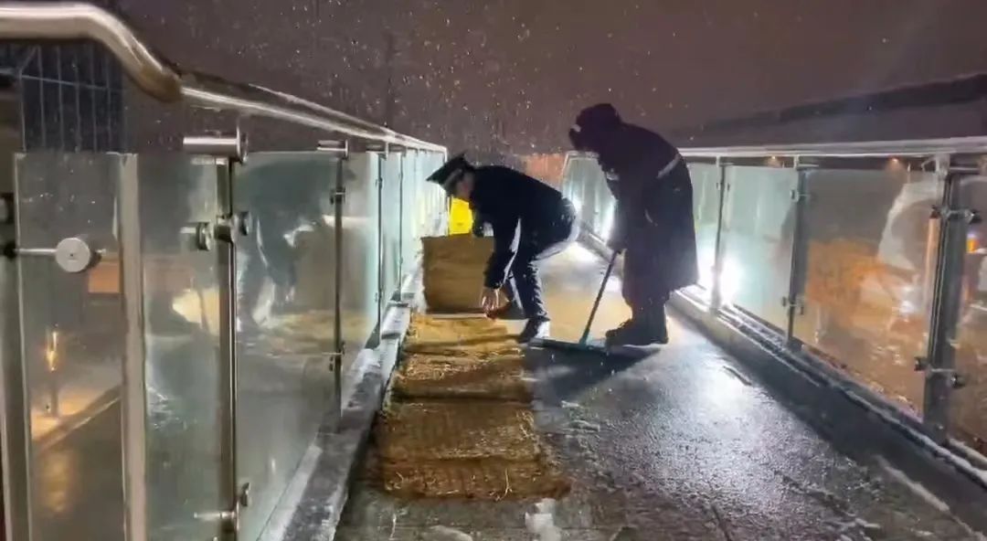 各区城管在重点路段、桥梁、弯道、坡道等处及时抛洒融雪剂、铺设草垫,对人行道板、农贸市场、学校周边、公交站周边、地铁出入口等处加强巡查值守,分重点、分主次、逐路、逐段、逐巷开展工作,最大限度减少降雪对市民通行造成的不利影响。