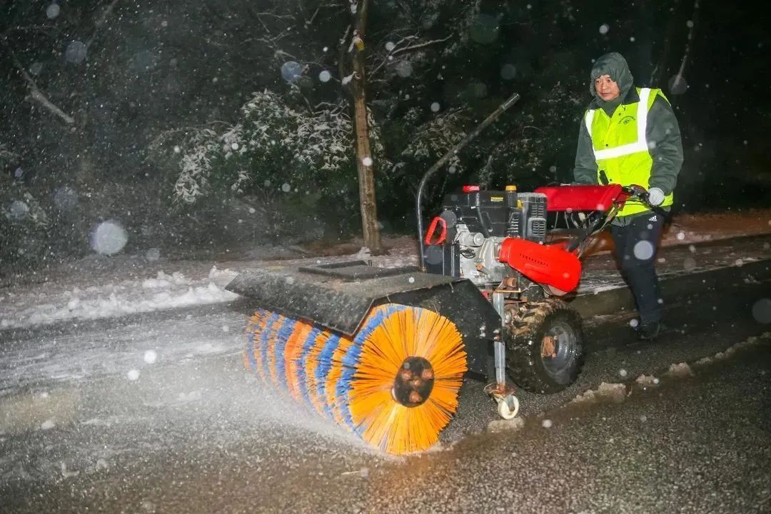 18日晚8点,锡城降雪开始减小,全市城管系统采取人机结合方式,彻夜对积雪路段开展除雪保畅,重点清除坡道、非机动车道和人行道上的积雪,确保第二天市民出行安全。
