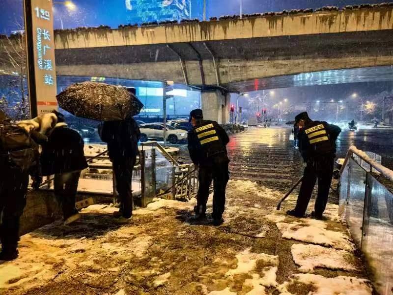 大雪来袭,地铁各车站提前组织运营线路防寒巡查,重点巡查户外钢轨、接触轨防护罩、高架段电缆、管道等设备设施,避免出现设备结冰损坏情况,保障极端天气下的设备设施安全正常运行。同时对信号、道岔、车辆、供电等关键设备设施进行全面检修排查,及时消除安全隐患。