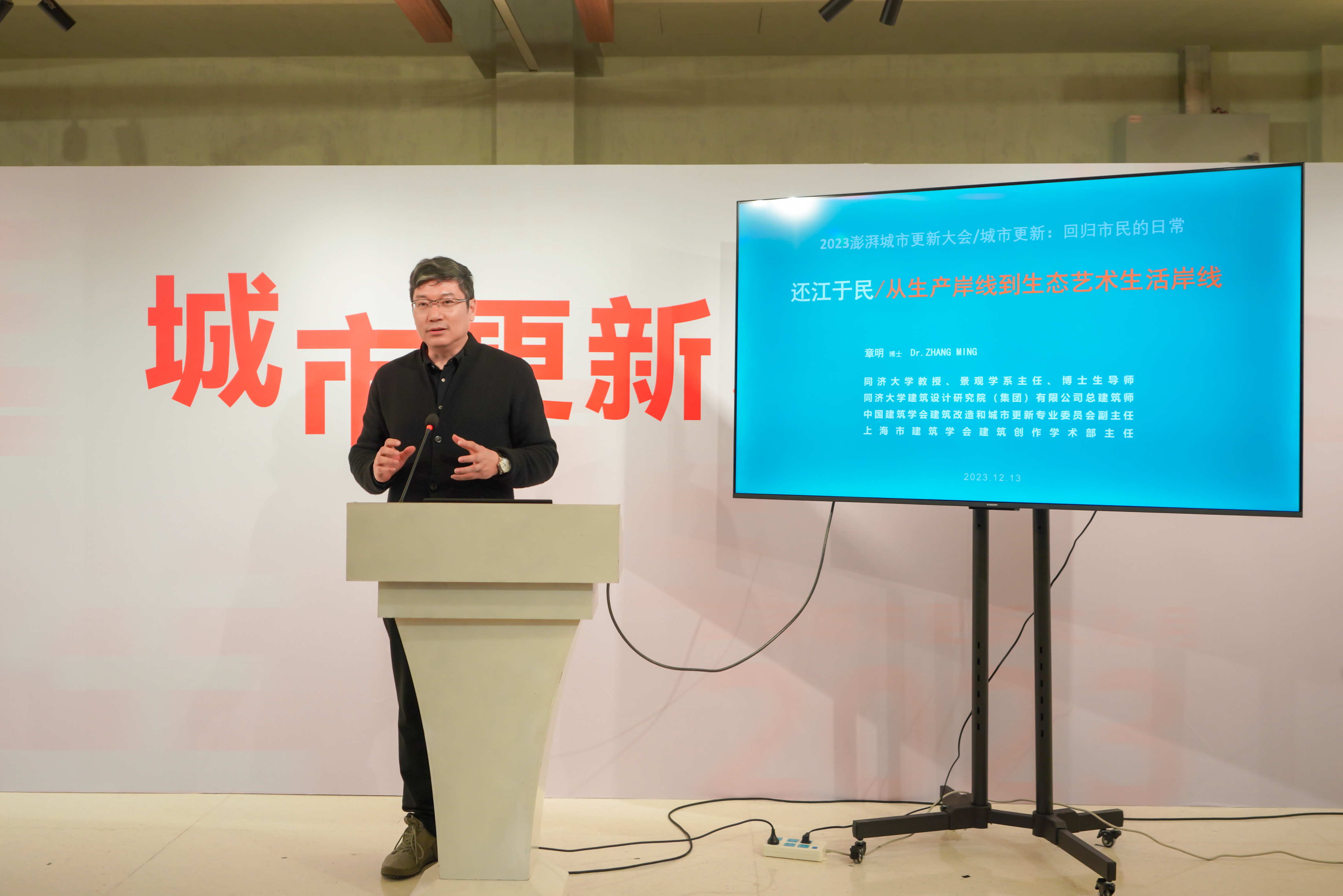 论坛上,嘉宾们分享了各自在城市更新领域的思考与实践。章明教授以上海杨浦滨江的城市更新优秀成果为案例,分享了自己对于城市滨水空间、工业遗产建筑如何实现系统性的城市更新的设计思考。马睿思则从盖博建筑50年来在德国鲁尔区的系列项目出发,分享了城市更新如何不断进化,从而大范围、长时间、可持续地促进地区发展。