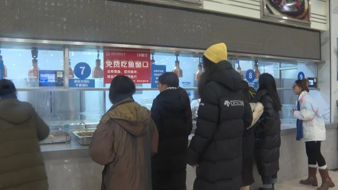 走进食堂,打饭窗口前早已排起了长长的队伍。本邦熏鱼、豆豉鱼块、椒盐鱼块、糟溜鱼片、剁椒鱼、青花椒鱼……让人眼花缭乱,不知“从何下嘴”。“鱼肉很嫩,口味独特,挺好吃的。”学生王嘉赫细细品尝完剁椒鱼后感叹道。