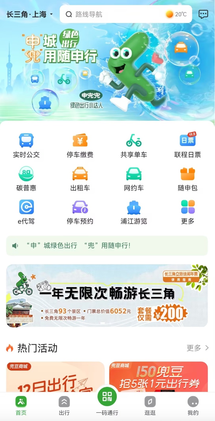 为更好地丰富长三角地区市民休闲生活,促进沪苏两地市民文化旅游交流,上海市“出行即服务”(MaaS)平台“随申行”近日与苏州市民卡有限公司联合发行了“长三角文旅休闲年票”试点产品(以下简称“休闲年票”),进一步深化MaaS平台“出行+生活”服务理念的践行。