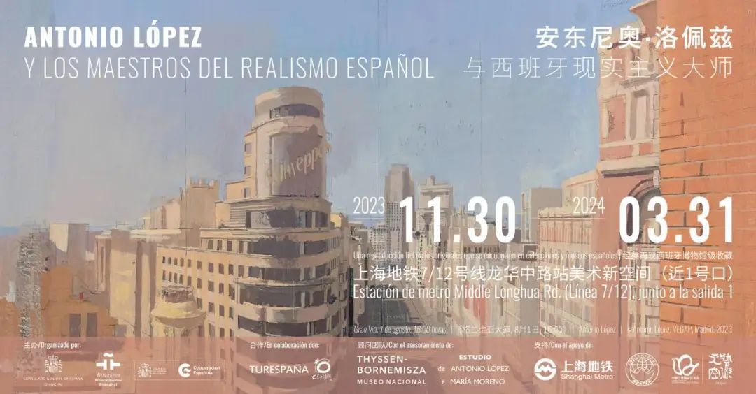 公众可以在7/12号线龙华中路站美术新空间(近1号口)领略米盖尔·安赫尔·阿古埃略、阿玛莉亚·阿维亚、弗朗西斯科·洛佩兹、何塞·马里亚·梅斯基塔、玛丽亚·莫雷诺、伊莎贝尔·金塔尼利亚以及胡里奥·巴克罗这几位西班牙大师们的作品,欣赏丰富多样的西班牙现实主义绘画,并沉浸在安东尼奥·洛佩兹的现实主义艺术世界里,亲自感受他对于细节一丝不苟的把控,以及通过作品与观众建立情感联系的才能。