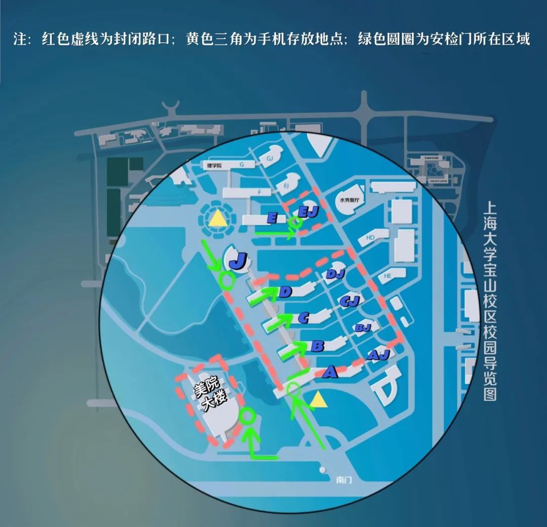 2、考点在上海大学宝山校区南大门广场(校外考生存放)、上海大学宝山校区图书馆广场(校内考生、EJ楼考生存放)设立手机存取点,供考生集中存放。考生将手机等禁止带入考场的电子产品锁入储物格中(每个考生使用1个储物格),钥匙暂由考生本人保管。