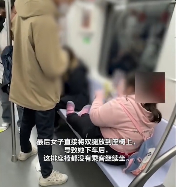 最后,女子索性直接将双腿