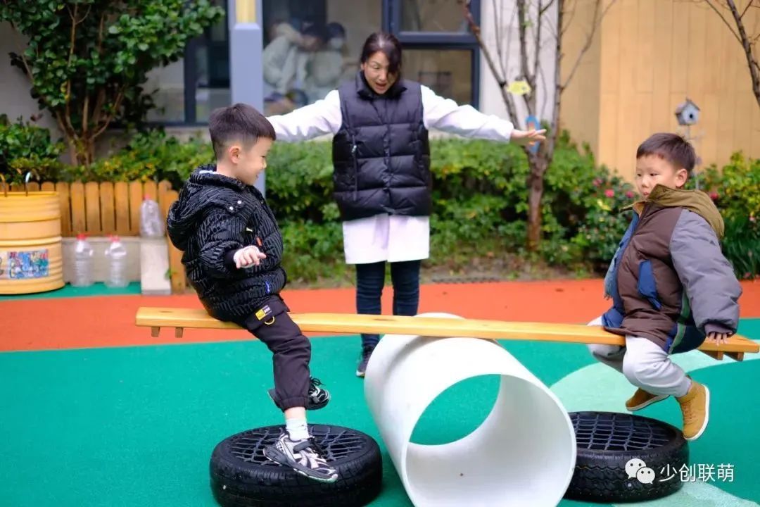 落叶、滚筒、轮胎、小木棍等材料如何与幼儿创意活动结合?在大宁国际第四幼儿园,老师和小朋友一起搭建、压跷跷板、玩小车,让操场暖意融融。