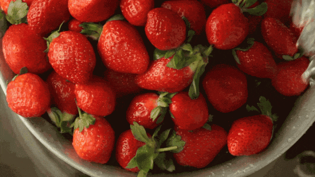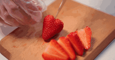 注意:洗草莓时千万不要先将蒂头叶片去除,以免将附着在草莓上的杂质在清洗过程中从蒂头处渗入。一定要冲洗干净后再去除蒂头!