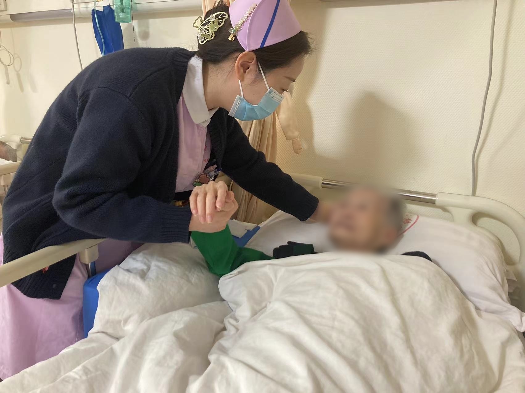 老人爱听越剧,护士就下载好音乐放给她听;老人追求“时髦”,志愿者就帮她涂指甲油;老人心情低落,社工就陪她聊天解闷……渐渐地,老人精神状态竟愈发好起来。