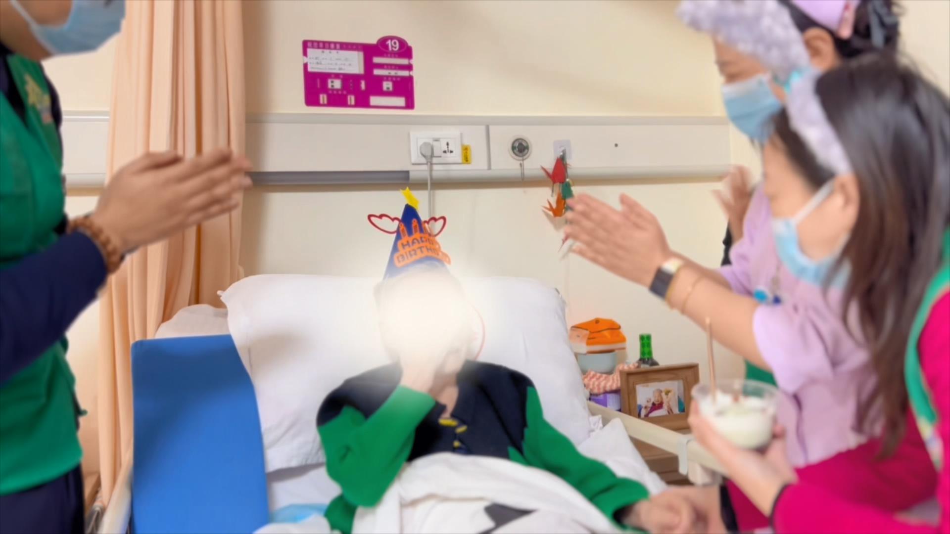“老太,祝您生日快乐。”在静安寺街道社区卫生服务中心安宁疗护病房内欢声笑语,医护人员手捧生日蛋糕,与家属一起,为90岁谢老太举办了一场温情暖暖的生日会。