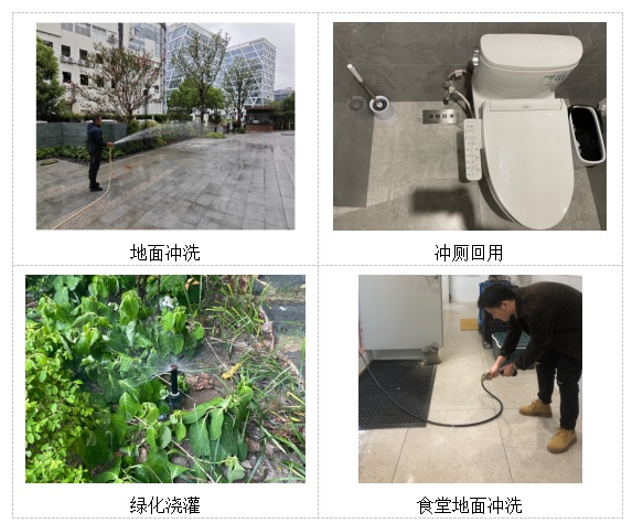 雨水利用主要用于绿化浇灌、室外道路冲洗、食堂地面冲洗、冲厕等。自2023年9月调试运行至今,雨水回用量已达到约100m³。