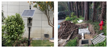 为了更好地进行雨水利用研究,项目在雨水收集池前端和后端均设有浊度计,雨水管网末端设有浊度计和流量计。具体监测方向包含:(1)智能化监测:贯彻雨水全过程的智能化监测,屋顶、雨水收集池进出水口、地块雨水排出口对雨水水质、水量采用传感器监测;(2)采样监测:回用雨水按季度进行水质采集监测,依托第三方单位做好水质跟踪监测。为了更好地促进员工、来访人员对海绵城市与雨水管控的理解,本案例设置宣传名牌、设施结构可视模型、宣传展厅等进行宣传教育与科普。