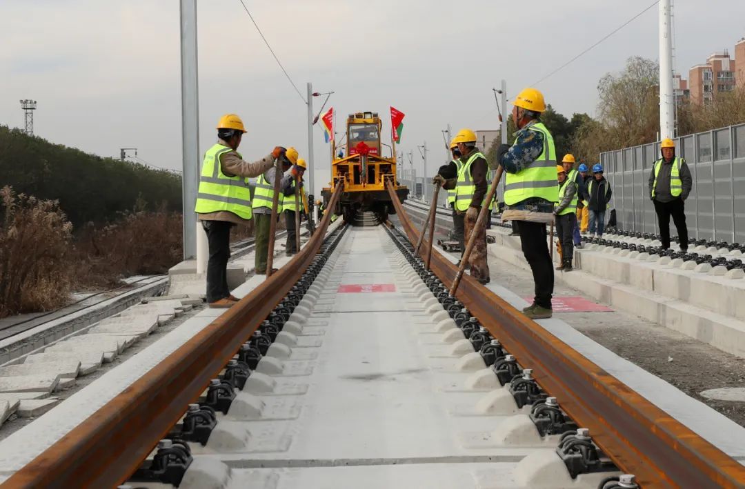 机场联络线项目桥梁隧道多、线路坡道大、施工交叉频繁,为确保长钢轨铺设作业安全,项目团队通过不断优化铺轨方案、完善相关管理制度和应急措施,确保铺轨作业进度达到日均3公里以上。