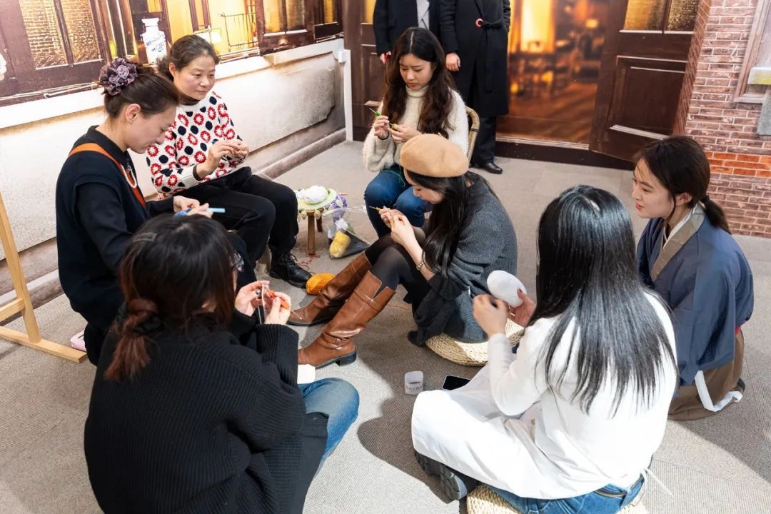 展览现场不仅循环展播与展览同名的原创文化纪录片,还开展了藏书票拓印、沉浸式角色饰演《弄堂里的编织记忆》以及钩针编结工作坊等丰富多样的体验活动。