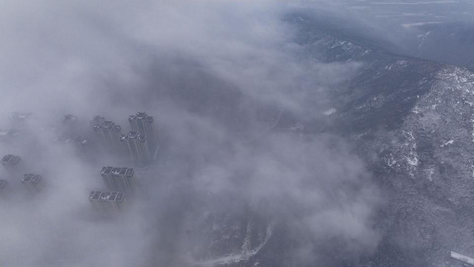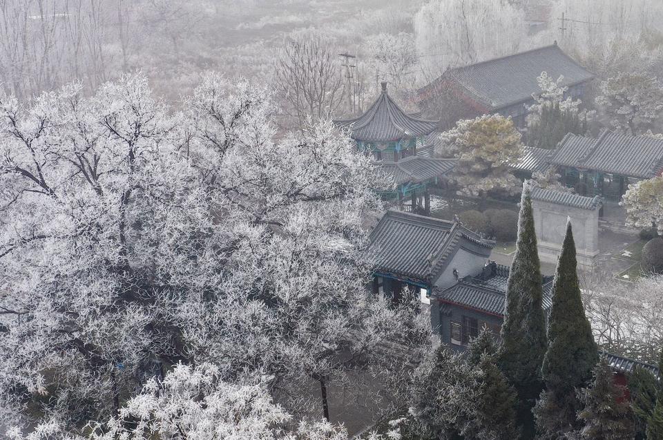 12月29日,邹平市黄山街道印台山、长山镇范仲淹教学点等地,俯瞰中的冬雾场景,近观中的雾凇景观,如诗如画。