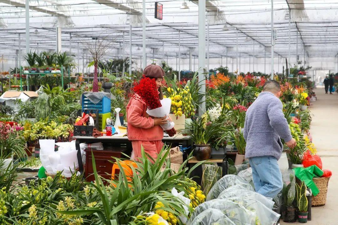 12月28日上午10时,记者来到了位于叶榭镇的云间卉谷(原浦南花卉市场),只见一个个花卉大棚整齐排列,棚内的各类年宵花姹紫嫣红,开得正艳,一派喜气洋洋的节日气氛。