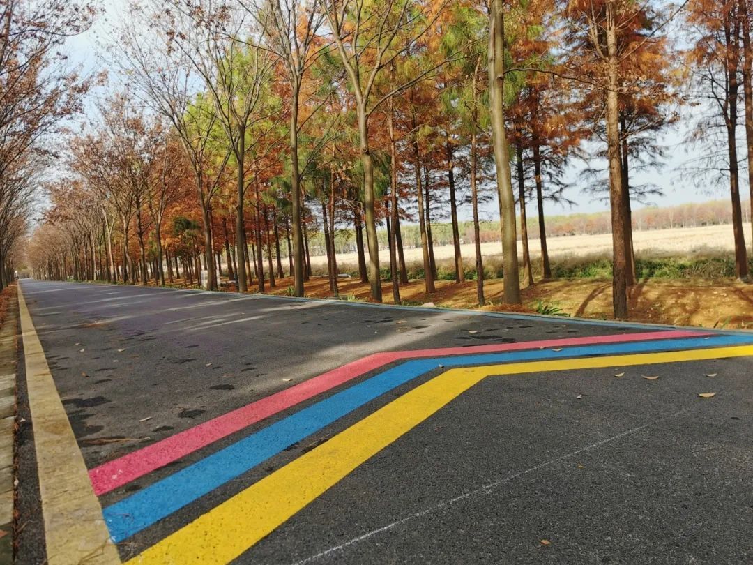 沿着香樟大道叶张路往北来到四支路,这条平日里大家散步、跑步、遛娃、拍照打卡的好去处,近日换上了“新装”,给单调的冬日增添了一抹“颜色”。