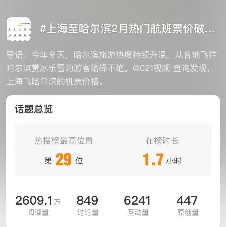 近日,#上海至哈尔滨2月热门航班票价破3千元#的消息火上了热搜,今年冬天,哈尔滨旅游热度持续升温,从各地飞往哈尔滨赏冰乐雪的游客络绎不绝。