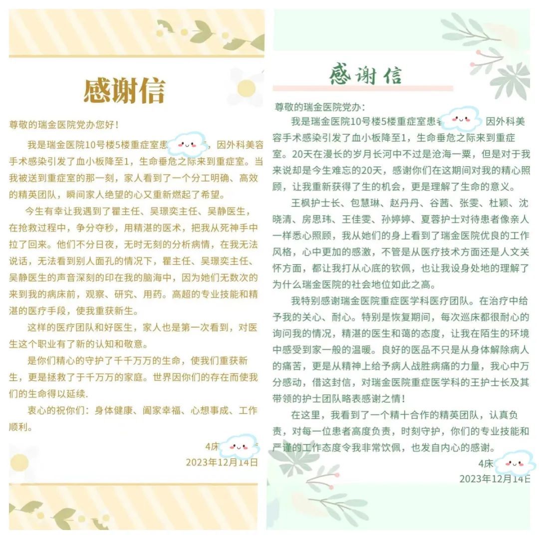 提起整容手术,王女士至今仍心有余悸,出院的当天,她向重症医学科送来一封感谢信,真诚感谢瑞金医院重症医学科瞿洪平主任带领的团队,感谢吴璟奕副主任医师和吴静医生精湛的医术,感谢王枫护士长带领的团队在治疗中给予自己的关心和耐心。