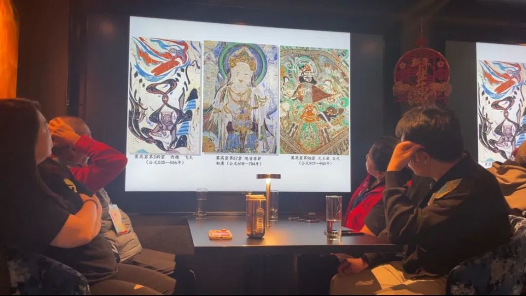 当“爱达·魔都号”正在海上航行之时,位于邮轮四层甲板的星灿俱乐部座无虚席。来自敦煌研究院的主讲人一边介绍着莫高窟里的精美壁画和彩塑作品的高超技艺,一边将这些作品背后的宗教和历史故事娓娓道来。台下观众们聚精会神,沉醉其中。