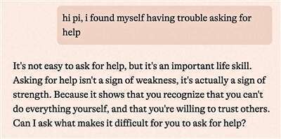 不到5秒,Pi回复了一长段文字:“寻求帮助并非易事,这是一项重要的生活技能。这不是软弱,而是坚强。这意味着你认识到自己不可能事事亲力亲为,你愿意相信别人。我能问问让你感到困难的原因吗?”