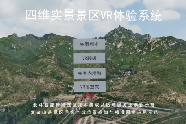 北斗系统开发了四维场景播放式应用、沂蒙山小调展览馆虚拟漫游、世界第一人行悬索桥虚拟蹦极交互式应用。通过对天蒙景区特色建筑物望海楼、世界第一人行悬索桥、沂蒙山小调展览馆及周边建筑群、玉皇宫、索道上站等三维场景建模,完成了天蒙景区四维实景播放式沉浸式体验系统,实现了经典路线漫游及代表性天气和季节的渲染效果。此系统为游客带来了前所未有的沉浸式体验,游客可以在四维实景中自由漫步,了解沂蒙山小调的历史文化。通过时间维度的切换,游客还能领略到景区云雾缭绕、树叶摇曳、水面波纹荡漾、光线随季节变换等丰富景象。