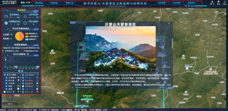 2023年10月20日,国家重点研发计划“复杂山岳景区游客全域位置感知与精准服务”应用运行启动仪式在天蒙景区举办。经过两个多月的应用实践,北斗项目研究成果“数字沂蒙山-天蒙景区立体监测与指挥系统”及“天蒙导览微信小程序”取得了显著的成果。