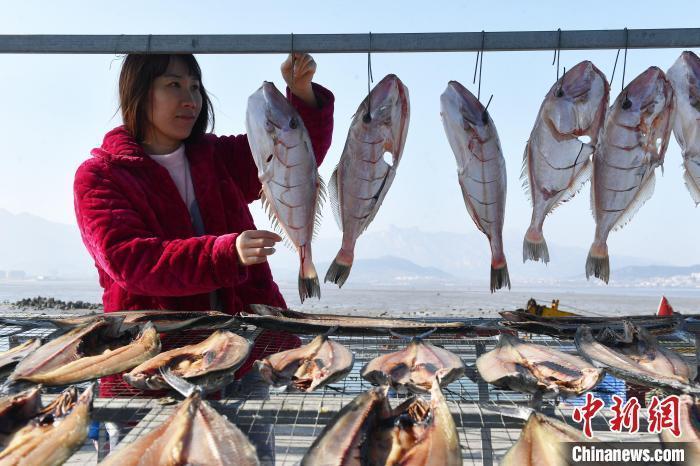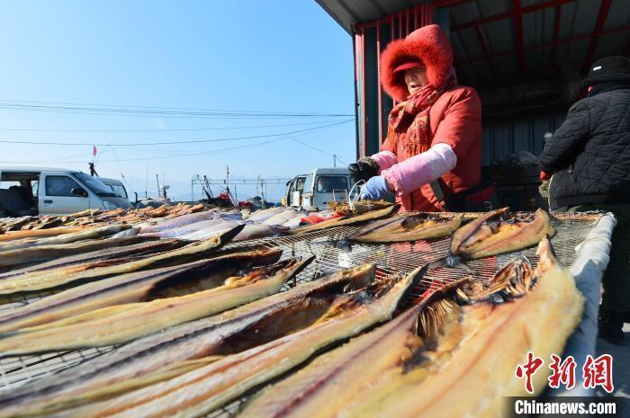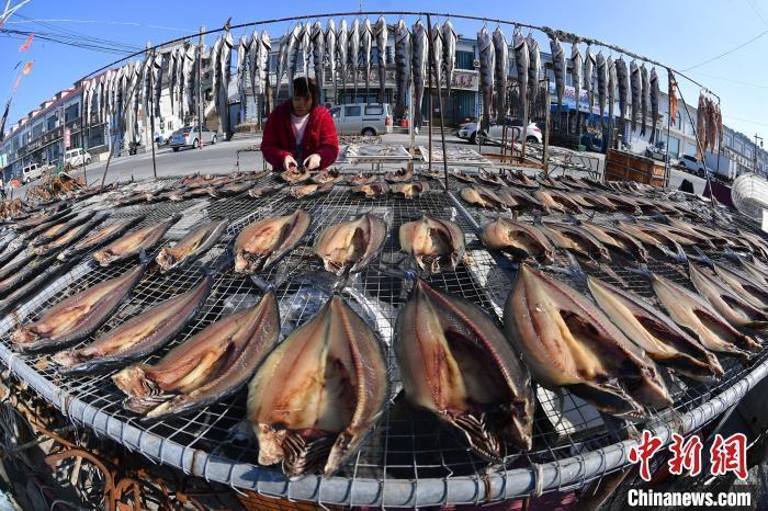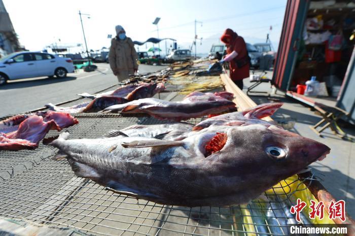 渔民在晾晒鮟鱇鱼干。王海滨 摄