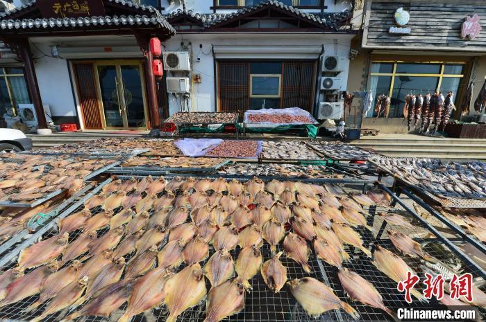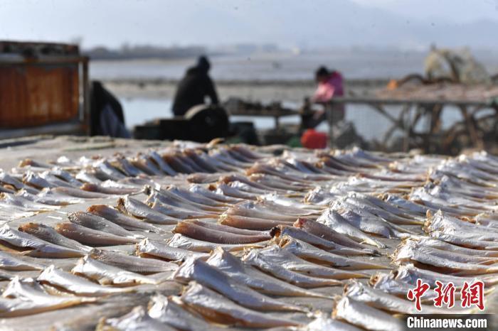 渔民在晾晒各类海鱼鱼干。王海滨 摄