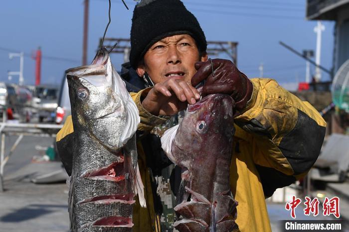 渔民展示刚刚加工过的鳕鱼。王海滨 摄