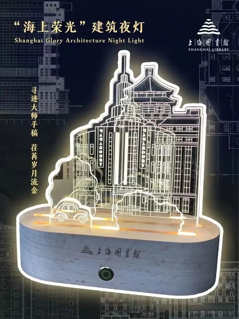 它的灵感来源于上海图书馆近代期刊中的民族建筑图样。产品精心选取了四座具有海派风格的近代建筑,通过独特的多层自由插片和手动创意造景,让它们在夜灯下熠熠生辉。这款文创产品不仅展示了上海图书馆的珍贵馆藏,还让公众感受到哲匠的精魂,触摸到不朽的经典。它不仅是件艺术品,更是一份向海上荣光致敬的心意。