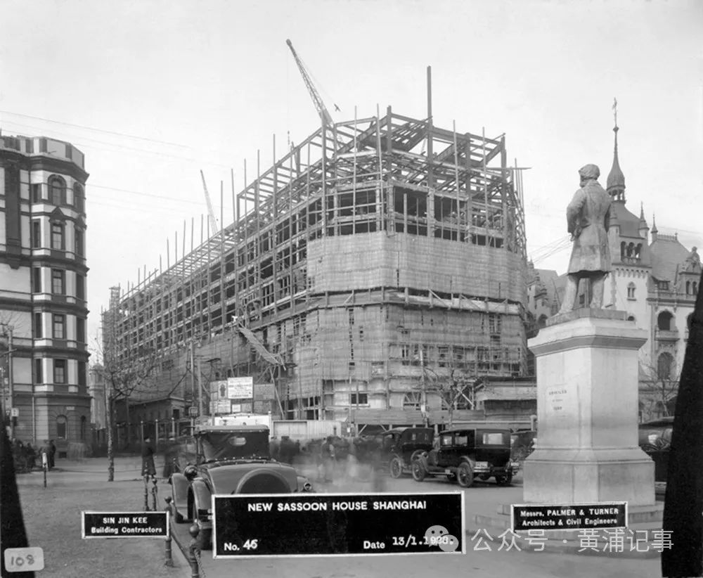 1877年,新沙逊洋行购得美商琼记洋行位于外滩南京路转角处的大楼,用于洋行办公。1926年,在大楼原址翻建新大厦,由公和洋行设计,华商新仁记营造厂承建,1929年竣工,名沙逊大厦。